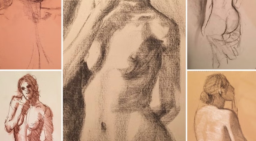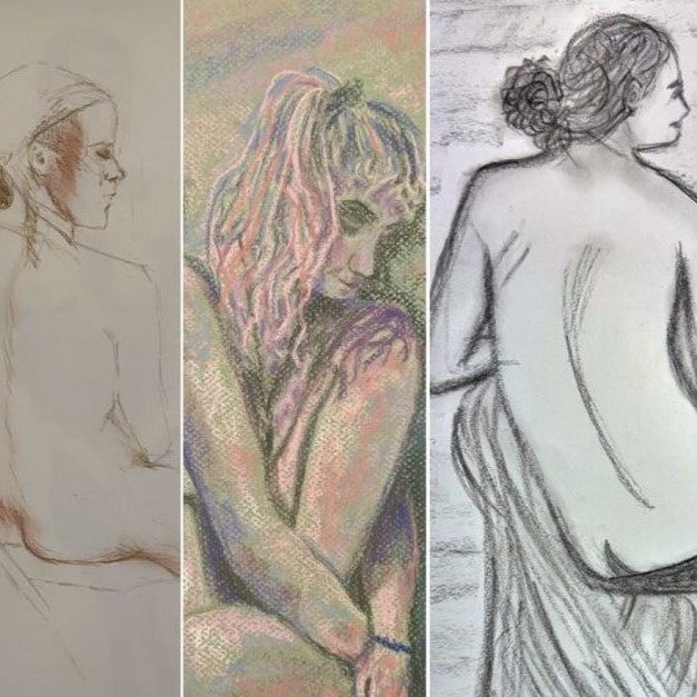 Self-directed figure drawing session in the round featuring a live model.